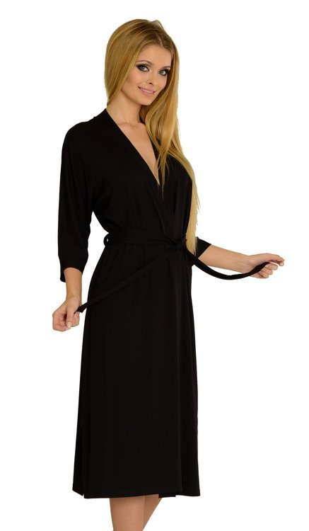• Eleganter Damenbademantel 942 Visa von De Lafense aus hochwertiger Viskose. Langer Schnitt, 3/4-Ärmel und Bund sorgen für einen femininen und klassischen Look.