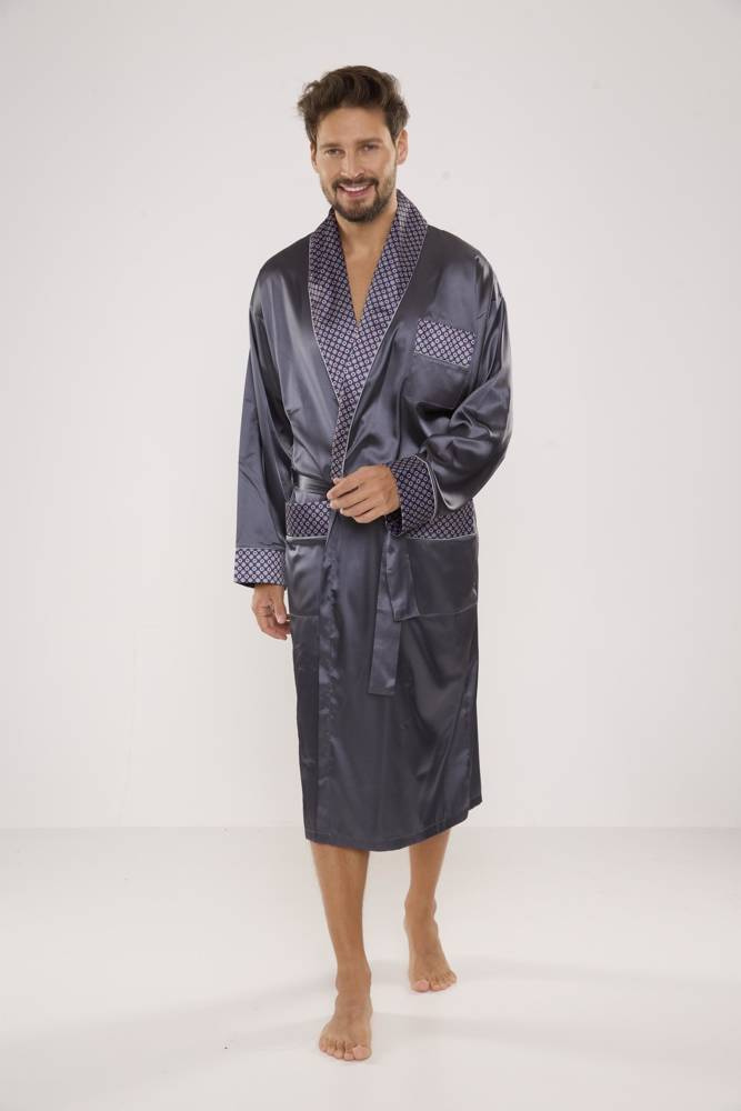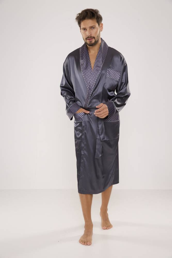 940 Forex Herren-Bademantel aus Satin - grau