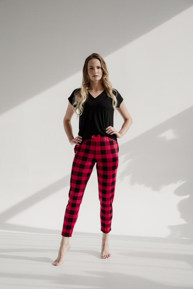 Bequeme Damenhose zum Schlafen aus hochwertiger Viskose in Karostoff.