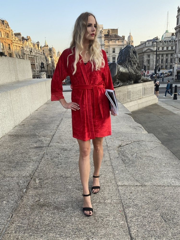 457 Milagros Damen Kurzer Morgenmantel Forex - rot