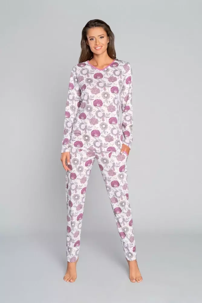 Damen Schlafanzug langarm, Hose Lobelia Italian Fashion -