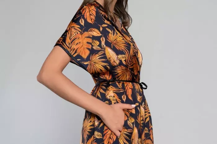 In tiefem, schönem Schwarz, das wunderbar mit dem gold-roten Herbstblattdruck korrespondiert, und herrlich schimmerndem Feinsatin ist der Morgenmantel Monstera ein Synonym für Luxus und Eleganz. Mit einem gleichnamigen Hemd oder Schlafanzug entsteht ein einzigartiges Set, das auch zu Hause niemandem entgehen wird.