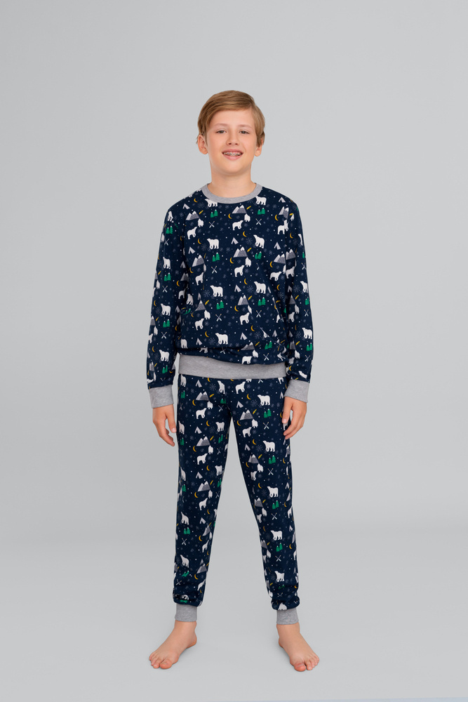Die Kinderpyjamas von Sid sind eine bezaubernde Option für Winternächte. Locker sitzendes Set mit hellgrauen Rippenbündchen. Die Pyjamas sind aus 100% MEGA SOFT-Baumwolle hergestellt, die einem speziellen Behandlungsverfahren unterzogen wurde. Dadurch erhält es einzigartige Eigenschaften: Es wird extrem weich und bequem und fördert so einen ruhigen und gesunden Schlaf.