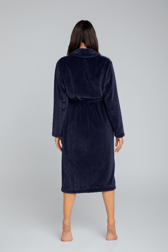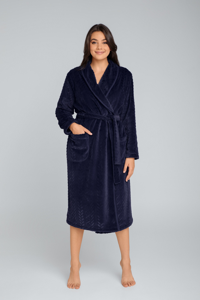 Bona Damen Fleece-Morgenmantel Italian Fashion - marineblau