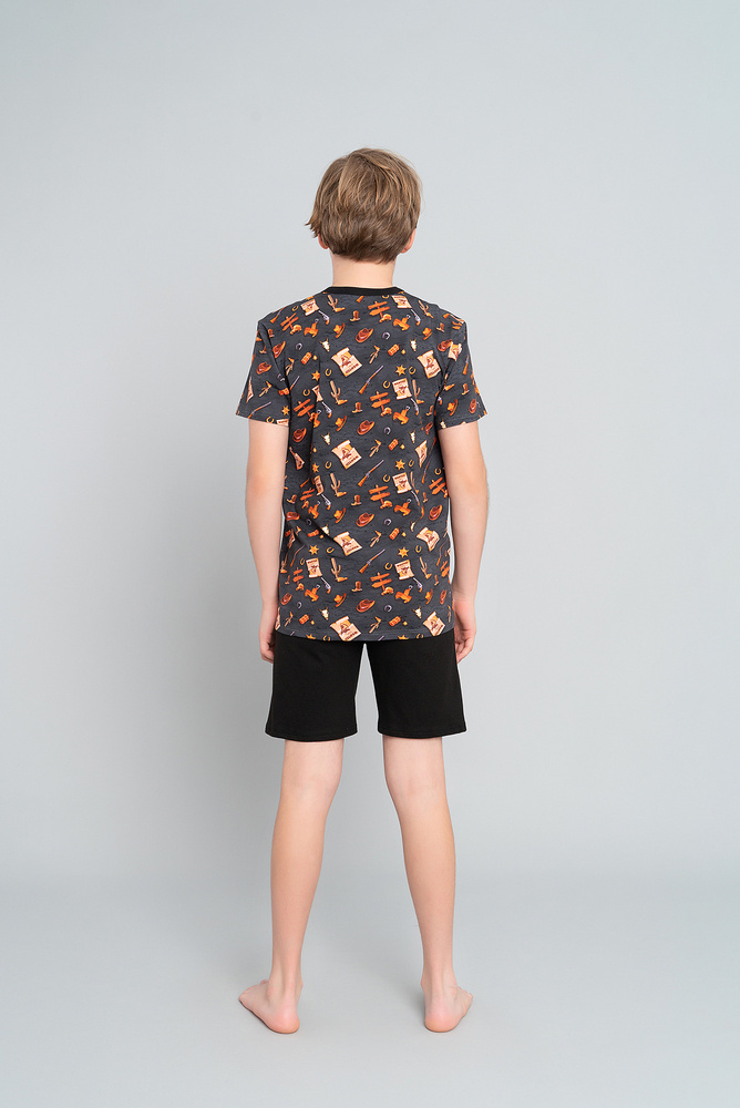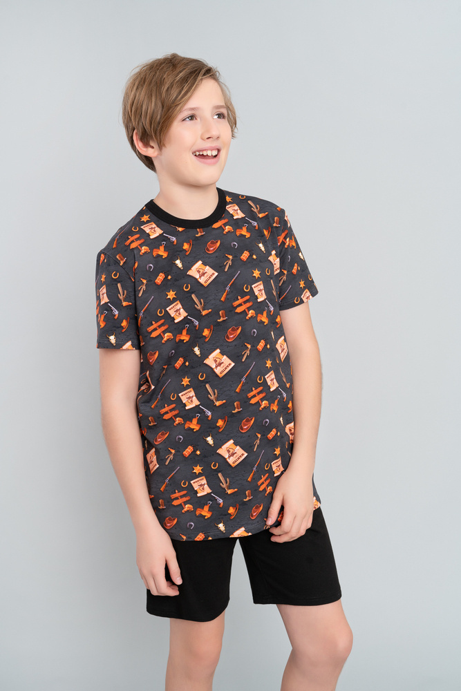 Western Jungen Schlafanzug kurzarm, Hose Italian Fashion- graphit/schwarz