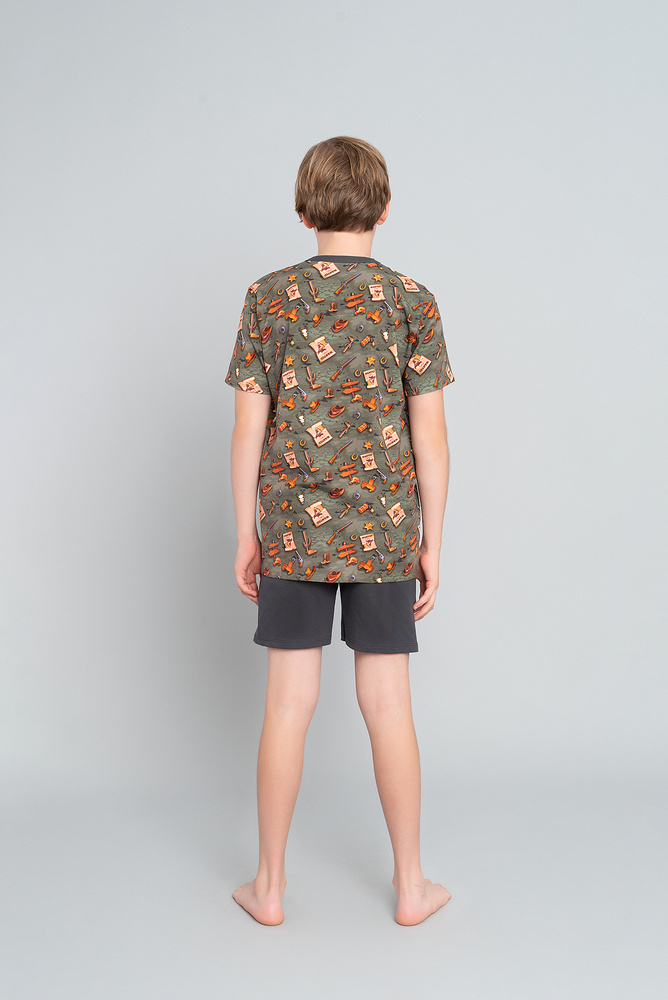Western Jungen Schlafanzug mit kurzen Ärmeln, Hose Italian Fashion - olive/graphit