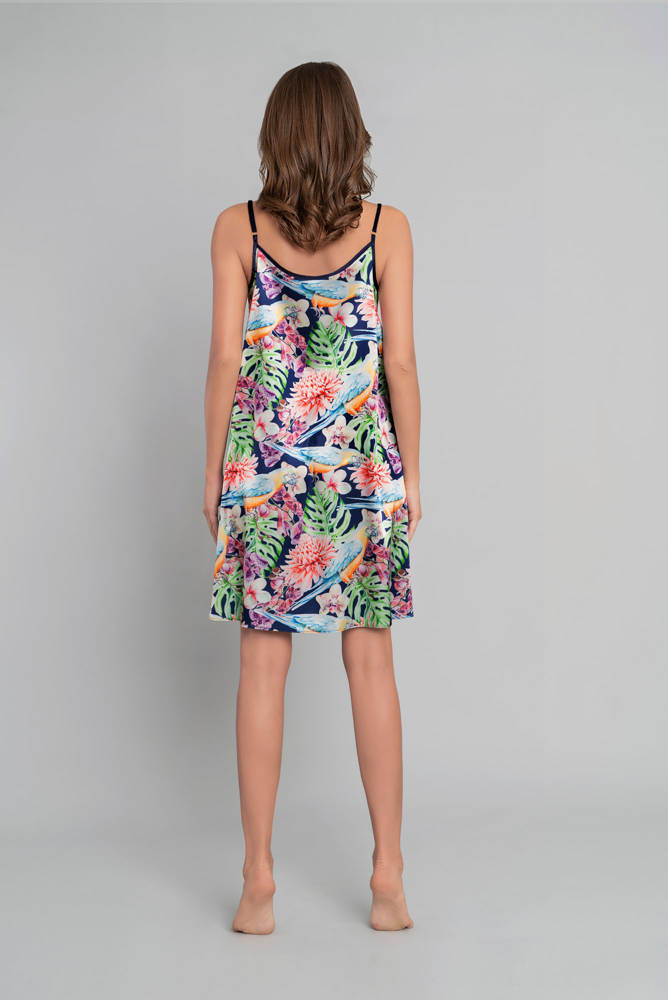 Polynesia ist ein hübsches Nachthemd mit schmalen Trägern, genäht aus samtigem Blumensatin.