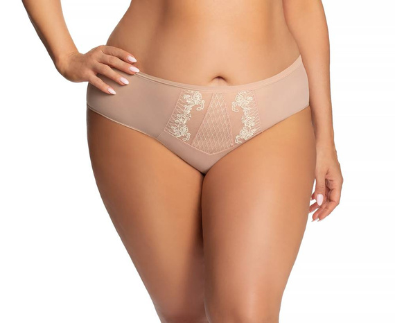 Damenhöschen aus glatter Mikrofaser und Tüllnetz mit durchbrochener Spitze.