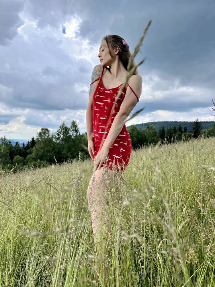 659 Cat Love Forex trägerloses Nachthemd - rot