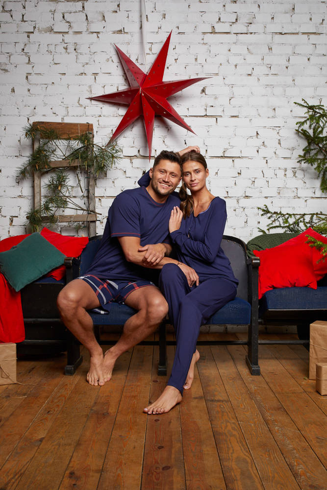 Kobieca, a jednocześnie funkcjonalna piżama damska z długim rękawem i długimi spodniami. Uszyta z wiskozy w kolorze granatowym. Kimonowy rękaw oraz klasyczny krój całej piżamy nadają jej elegancji. Spodnie posiadają nieuciskającą gumę w pasie. Góra piżamy jest rozpinana, a jej dekolt wykończony atłasową lamówką w kolorze granatowym. Piżama dzięki zastosowaniu wiskozy wzbogaconej elastanem jest idealna na chłodniejsze wieczory.