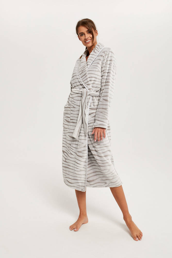 Der weiche und angenehme Bademantel Asma ist perfekt für die Herbst- und Winterzeit. Der weiche und flauschige Stoff ist bipolar und hat eine hervorragende Wärmeisolierung, die für Wärme und Komfort sorgt. Der kräftige Tierprint harmoniert fantastisch mit der dezenten grauen Farbgebung und verleiht dem Ganzen einen einzigartigen Charakter. . Ein zusätzlicher Vorteil ist die praktische Schnürung in der Taille und die funktionellen Taschen.