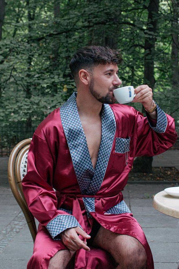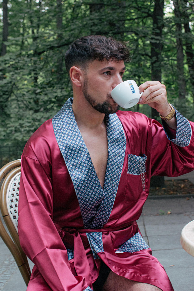 940 Forex Bademantel aus Satin für Männer - kastanienbraun