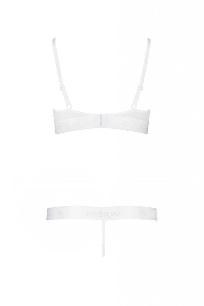 Nietypowy biustonosz typu open bra. Przeznaczony jest dla kobiet lubiących odważną, nietypową bieliznę. Doskonale uwydatnia piersi, a ponętne paski okalające ciało dodają pikanterii do całości. W skład kompletu wchodzi biustonosz typu 'open bra' oraz mocno wycięte stringi