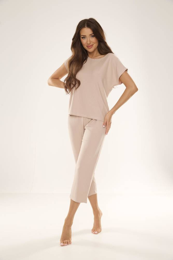 Zweiteiliger Pyjama von De lafense aus hochwertiger Viskose. Perfekt für eine erholsame Nachtruhe und einen guten Start in den Tag mit dem ersten Morgenkaffee. Lose kkurzärmeliges T-Shirt. Solide Hose, 7/8 Länge. Der Pyjama eignet sich gut als bequeme Hauskleidung.