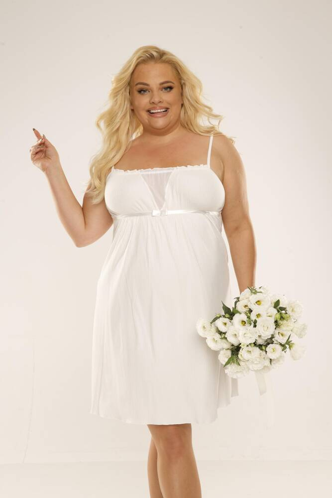 Äußerst bequemes Nachthemd. Schmale, verstellbare Schulterträger, leichte Bügelfalte an der Brust. Satinband unter der Büste. Länge vor dem Knie. Es wurde aus hochwertiger Viskose gefertigt, die in Kombination mit dem bequemen Schnitt für höchsten Tragekomfort sorgt. Der Gummizug an der Büste ermöglicht das Stillen.