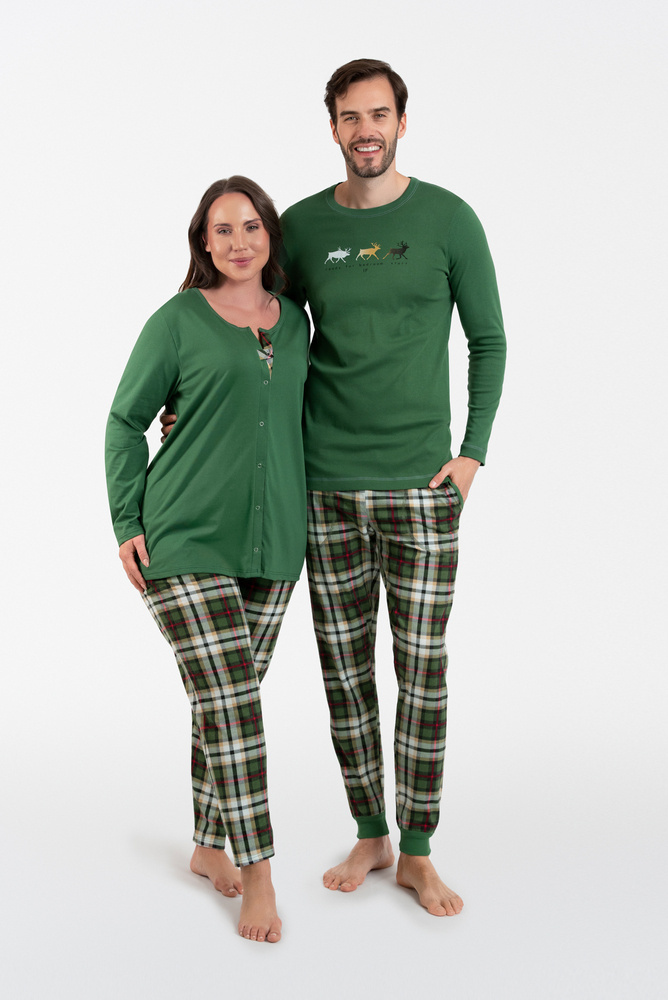 Können Pyjamas elegant sein?? Und doch, wie! Dieser einzigartige Damenpyjama mit Reißverschluss und karierter Hose ist etwas für alle Damen, die auch im Schlafzimmer Wert auf guten Stil legen. Die Baumwollpyjamas für Damen haben einen weichen, angenehmen Stoff und das modische Muster verleiht ihnen Charakter. Das Pyjama-Oberteil ist geschmackvoll mit einem Karomuster versehen, hat einen Rundhalsausschnitt und einen durchgehenden Reißverschluss, während der gerade Schnitt der Hose für Komfort und Bequemlichkeit sorgt. Praktische Taschen in der Hose. Der modische Damenpyjama ist in den Größen S bis XXL und in zwei Farbvarianten erhältlich - in Ecru oder in Grüntönen.